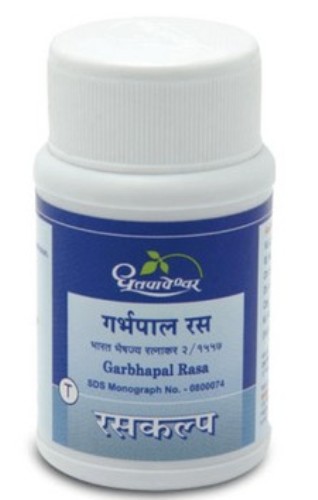 Dhootapapeshwar Garbhapal Rasa Tablet contains Shuddha Hingul, Naga Bhasma, Vanga Bhasma, Loha Bhasma, Dalchini, Tamalpatra, Elaichi, Shunthi, Maricha, Pippali, Dhanyak, Krushnajeerak, Munakka, Chavak, Deodar and Bhavana - Vishnukranta Swarasa as major ingredients.