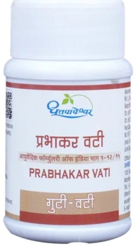 Prabhakar Vati is a tablet, used in Ayurvedic treatment of heart diseases. It contains mineral origin ingredients and hence should only be taken under a doctor’s prescription.
