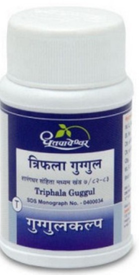 Triphala Guggulu or guggul is an effective ayurvedic medicine and guggulu preparation used in ayurveda for weight loss, constipation, fistula, piles, internal and liver problems, infective wounds of soft tissues and corn of feet.