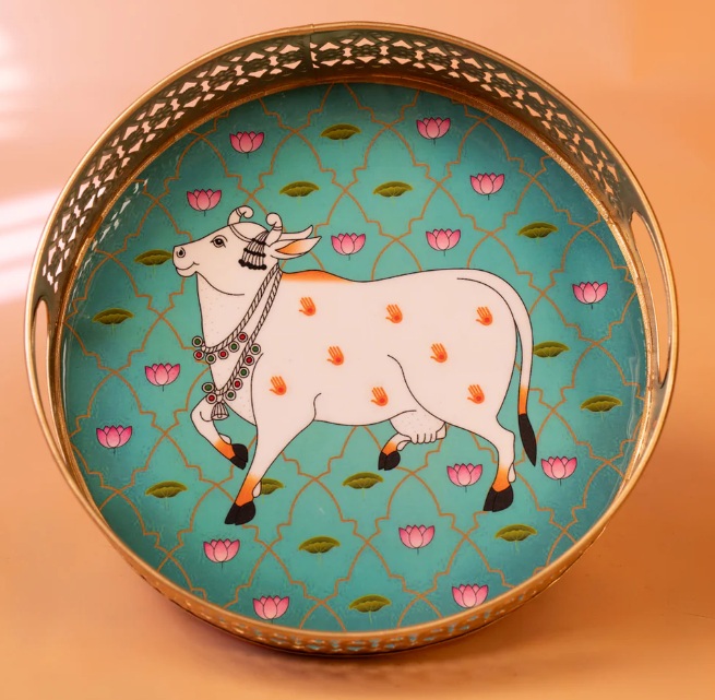 Digital Printed Pichwai Tray - Teal Green :