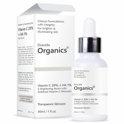 “Get a beaming ray of fresh and hydrated skin free of blemishes and pores with Dravida Organics beauty shield Vitamin C serum. This luscious skin radiating serum infused with the goodness of Vitamin C makes your skin feel smoother and firmer with every use”