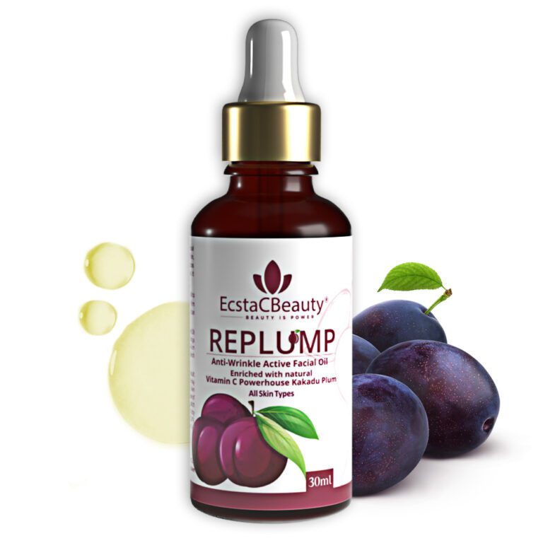 Replump anti-wrinkle facial oil is rich in antioxidants and vitamins and lightens dark spots, age spots, hyperpigmentation, and other skin discolorations. The wrinkle repair and firming face oil controls fine lines, wrinkles, and premature skin sagging. The vitamin c facial oil, improves the overall tone of dull skin, making it more radiant and youthful. Let’s keep the signs of aging at bay with natural vitamin c giant Kakadu Plum & antioxidants-rich oils. This anti-aging facial oil is made with a calming cocktail of celebrated anti-wrinkle ingredients packed with antioxidants like Kakadu Plum, Marula, Moringa, Tamanu, Sancha Inchi & Hemp Seed which actively promotes a healthier skin barrier by reducing the impact of free radical damage.