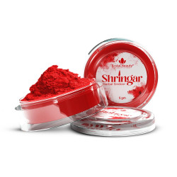 100% Natural Sindoor Powder for women that enhances beauty without causing any irritation or damage. Made with the power of herbal extracts and floral pigments, the herbal sindoor is a ubiquitous part of a married Indian woman’s look. The kumkum powder for women has been created by implementing a long-lasting formula; easy to use and can be removed with water or makeup remover. The herbal kumkum powder has been specially prepared with nature-derived ingredients that preserve healthy skin and hair texture while leaving a soothing effect. The suhaag sindoor is completely free from harmful chemicals, mercury, and lead. The natural sindoor dust is available in Red Shade.