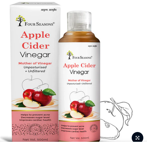 Apple cider vinegar is made by fermenting apple juice. Four Seasons Apple Cider Vinegar is 100 % natural and is made from the juice of delicious Himalayan apples known for its wholesome and lasting relief. Apple Cider Vinegar can be used for its broad spectrum health condition benefits. Apple Cider Vinegar has various health benefits, such as healthy weight management, detoxification, and healthy skin and hair. This Apple Cider Vinegar is brewed for extra potency using the traditional process.
