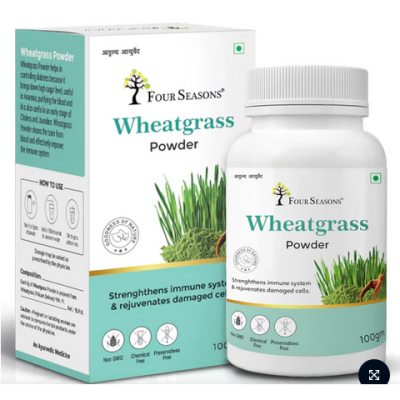 Four Seasons Wheatgrass Powder is a perfect green food supplement that helps in strengthening the immune system. It provides all the necessary nutrients to the body. It helps in detoxification of the body and also helps in reducing stress, tension, foul odours of breath, and sweat. Four Seasons Wheatgrass Powder is one of the best plant-based superfoods that is raved about for its benefits ranging from being an ideal health tonic to its ability to manage specific diseases. Four Seasons Wheatgrass Powder is a pure powder made from whole leaf wheatgrass low-temperature dried for ultimate freshness. It contains 70% chlorophyll and is high in electrolytes, magnesium, calcium, and vitamins A, B, C and E.