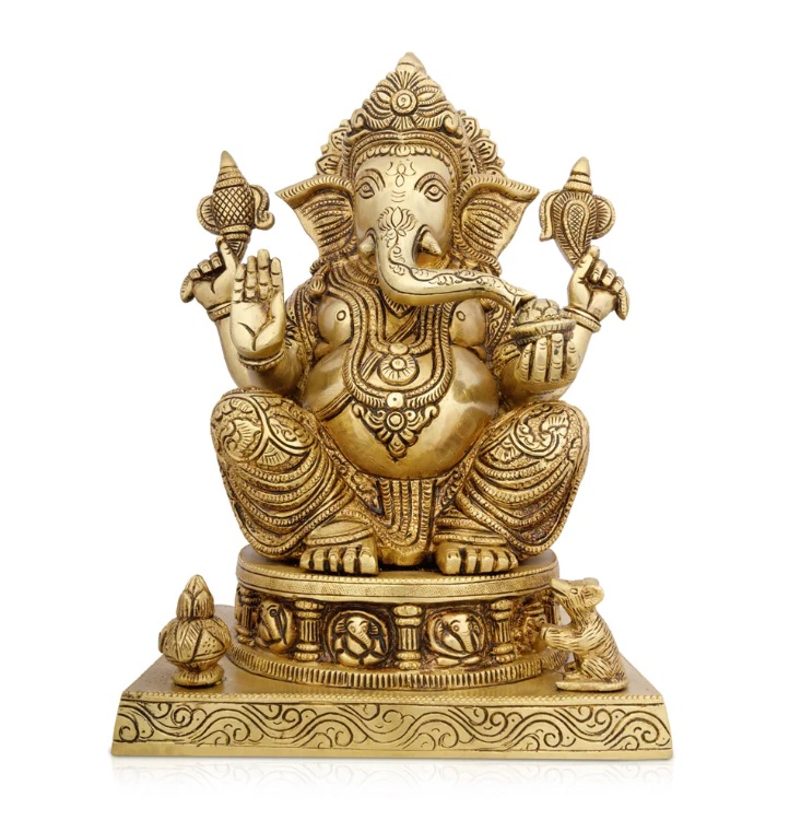 Ganesh Murti - 11 x 7 Inches | Antique Brass Idol/ Vinayaka Statue/ Ganpati Idol for Pooja/ 6.500 Kgs Approx