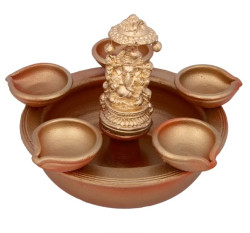Ganesh Murti with Urli - 6.5 x 9 Inches | 5 Diya Lamp/ Vinayagar Statue with Urli for Pooja