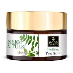 Good Vibes Purifying Face Scrub, Neem Tulsi gently exfoliates your skin.