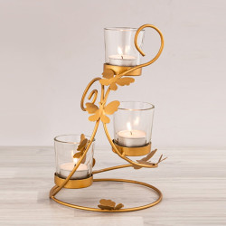 Handcrafted Golden Metal Tea Light Stand :