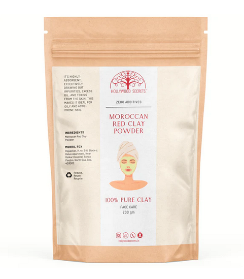 Moroccan Red Clay help Reduce sebum secretion and eliminates blemishes, Unclogs the pores, and draws out toxins, Nourishes the skin with minerals, and Increases skin elasticity.