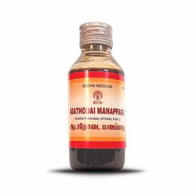 Expectorant Herbal Adathodai Manappagu Syrup – The Siddha medicines are manufactured in compliance with all mandatory regulations of the Ministry of Ayurvedic and Siddha Adathodai Manappagu Syrup organic