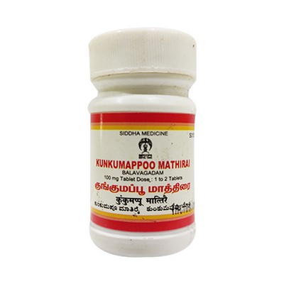 Herbal Kungumapoo Tablets Mathirai - The Siddha medicines are manufactured with compliance of all mandatory regulation of Ministry of Ayurvedic and Siddha.