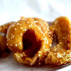Ingredients: All Purpose Flour,Somolina, Sugar, green Cardamom, oil, Jaggery,Sesame seeds.