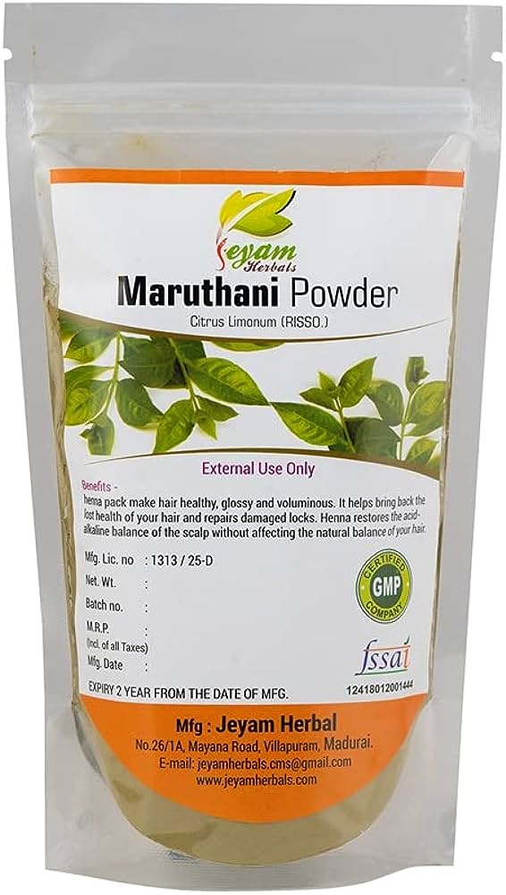 • Many of us get problems with hair fall and any issues related to hair. All the problems related to dandruff, hair loss, grey hair issues, and baldness in men can be reduced by mixing the required amount of Maruthani powder with clean coconut oil and rubbing the oil on the scalp.