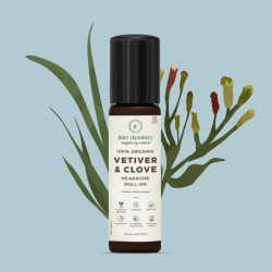 This 100% pure and organic Vetiver and Clove Headache Roll-on Balm is a fast-absorbing balm that relieves headaches and mental fatigue.