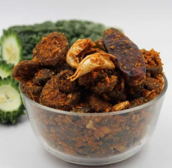 Specialty: Andhra Style Kakarakaya Karam Powder is made using fresh hand-picked Bitter gourds cut into suitable pieces and deep-fried in vegetable oil and then premium quality Ingredients and spices are added. This Delirious bitter gourd Karam, every meal with rice and ghee or with idly, chapathi, and dosa as a side dish which will change your dish taste and flavor. Bitter gourd or karela is a very good vegetable for diabetes. This Kakarakaya Karam is made on the village’s farm in a traditional way. This process is completely manual.