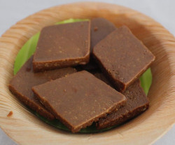 Ingredients: Gram Flour (Kadalai Mavu), Cashew (Mundhiri), Palm Jaggery (Karuppatti), Cow Ghee (Nei), Cardamom (Aelakkai), Badam
