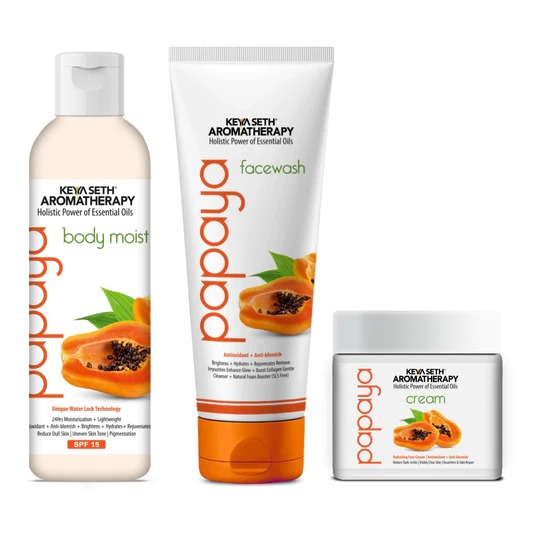 Papaya has an enzyme called papain, which has overall health benefits for skin & health. It is rich in Vitamins like A, C, and Phyto-vitamin K. In addition to these vitamins, it also has Micro-minerals like phosphorus, magnesium, and beta-carotene. The study suggested that papaya helps in skin elasticity, which would minimize the appearance of wrinkles. Papain helps decrease inflammation. Rich in Vitamin A, Papaya treats & protects acne.