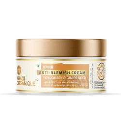 KHADI ORGANIQUE Anti-Blemish Cream gently offers as exfoliations for clear blemishes, controls melanin production and prevents from skin darkening. This cream helpful for maintain the skin pH balance, cleanses and rejuvenates the skin pores for revealing softer and smoother texture.
