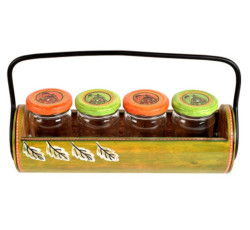 Lemon Green Glass Jars with Wooden Stand :