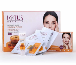 Lotus Herbals Radiance Boost Ubtan Gold Facial Kit : Glowing Complexion Nourishment and Rejuvenation Luxurious Experience Makes your skin supple Helps to get rid of tan
