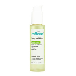 Reduce rough, bumpy & strawberry skin and tan overnight with Green Tea & 10% AHA Body Exfoliator. Experience a unique blend of AHA - Lactic & Glycolic Acids - along with refreshing Green Tea! Glycolic Acid exfoliates the skin’s surface to remove dead & rough skin and improve its texture while Lactic Acid reduces Keratosis Pilaris (KP), dark patches & tan. Together they leave the skin smooth & soft after just 1 use! Antioxidant-rich Green Tea & Caffeine reduce redness and inflammation by soothing and toning the skin. Powered by Niacinamide the exfoliator targets dark patches, blemishes & pigmentation while ensuring the skin is hydrated. Reveal healthier looking skin that feels exceptionally smooth with this power packed overnight solution.