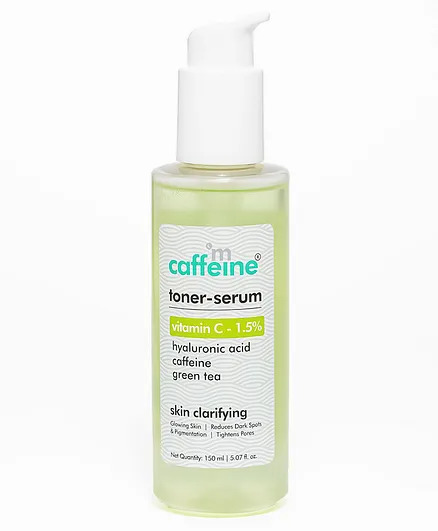 Get naturally glowing and even-toned skin right from the 1st use with this 2-in-1 formula packed with the power of serum actives and toner. This revolutionary toner-serum with Vitamin C - 1.5% & Green Tea tightens pores, reduces dark spots & pigmentation and provides sun damage protection. Enriched with Hyaluronic Acid and Caffeine, it deeply hydrates and visibly tones skin. The clarifying toner-serum leaves you with soothed and plump skin that GLOWS!