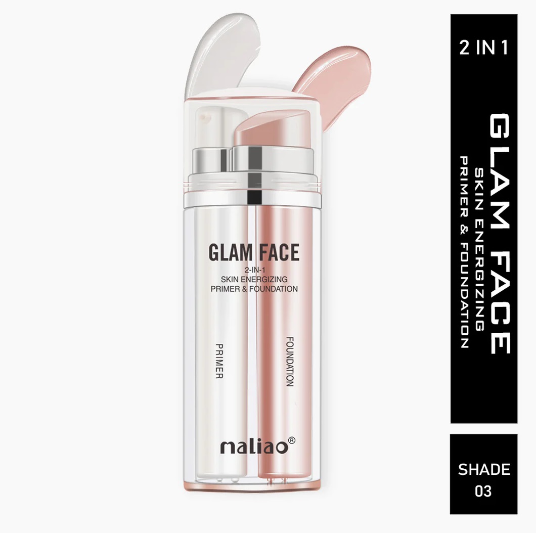 Maliao 2-in-1 Skin Energizing Base Primer + Foundation – Streamline your makeup routine with the ultimate base glow. This innovative product combines the benefits of primer and foundation in one, saving you time and effort. It energizes and brightens your complexion and provides a smooth, even base for flawless makeup. Designed to last, it keeps your makeup looking fresh and vibrant all day long. Enjoy enhanced natural shine with a glossy finish.