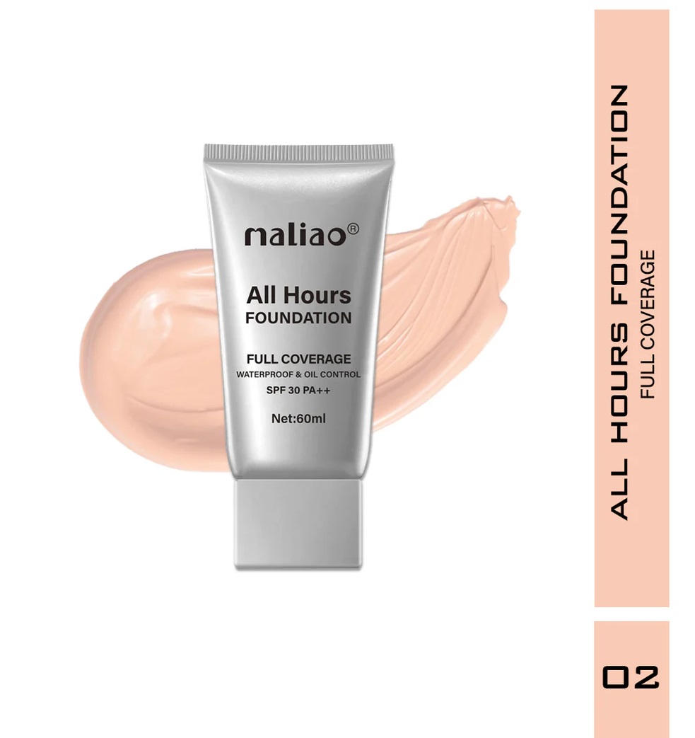 Achieve a flawless complexion that lasts all day with Maliao All Hours Foundation. This foundation provides full coverage to hide imperfections and create an even skin tone. Its waterproof formula ensures that it remains resistant to heat, humidity and sweat, making it ideal for long-term wear. Designed to control oil, it helps reduce shine and keeps your skin matte. Formulated with SPF 30 PA++, this foundation provides effective sun protection against harmful UV rays, preventing premature aging and sun damage. Enjoy a natural-looking finish that enhances your skin's glow without feeling heavy or sticky. Whether for everyday use or special occasions, Maliao All Hours Foundation delivers a smooth, flawless complexion you can rely on.