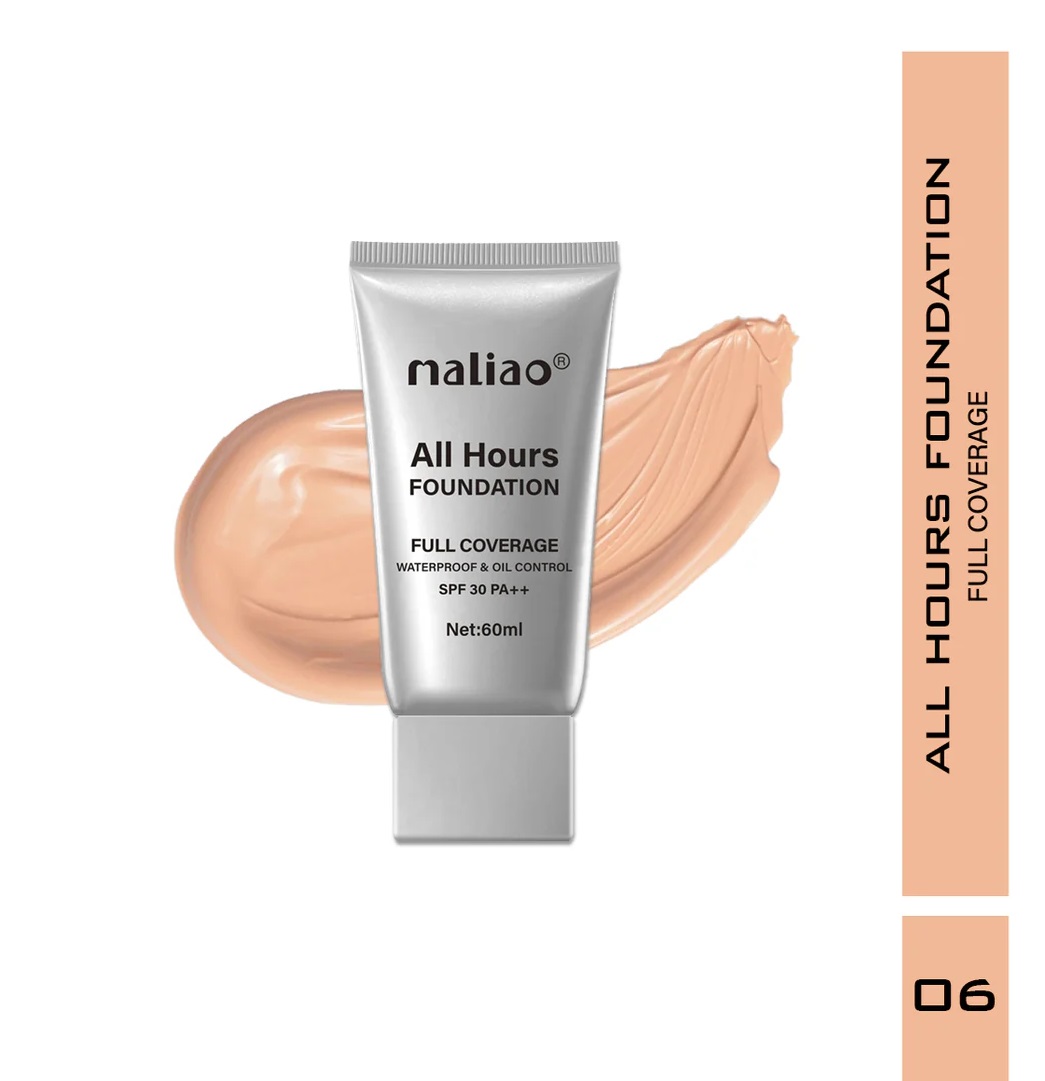 Achieve a flawless complexion that lasts all day with Maliao All Hours Foundation. This foundation provides full coverage to hide imperfections and create an even skin tone. Its waterproof formula ensures that it remains resistant to heat, humidity and sweat, making it ideal for long-term wear. Designed to control oil, it helps reduce shine and keeps your skin matte. Formulated with SPF 30 PA++, this foundation provides effective sun protection against harmful UV rays, preventing premature aging and sun damage. Enjoy a natural-looking finish that enhances your skin's glow without feeling heavy or sticky. Whether for everyday use or special occasions, Maliao All Hours Foundation delivers a smooth, flawless complexion you can rely on.
