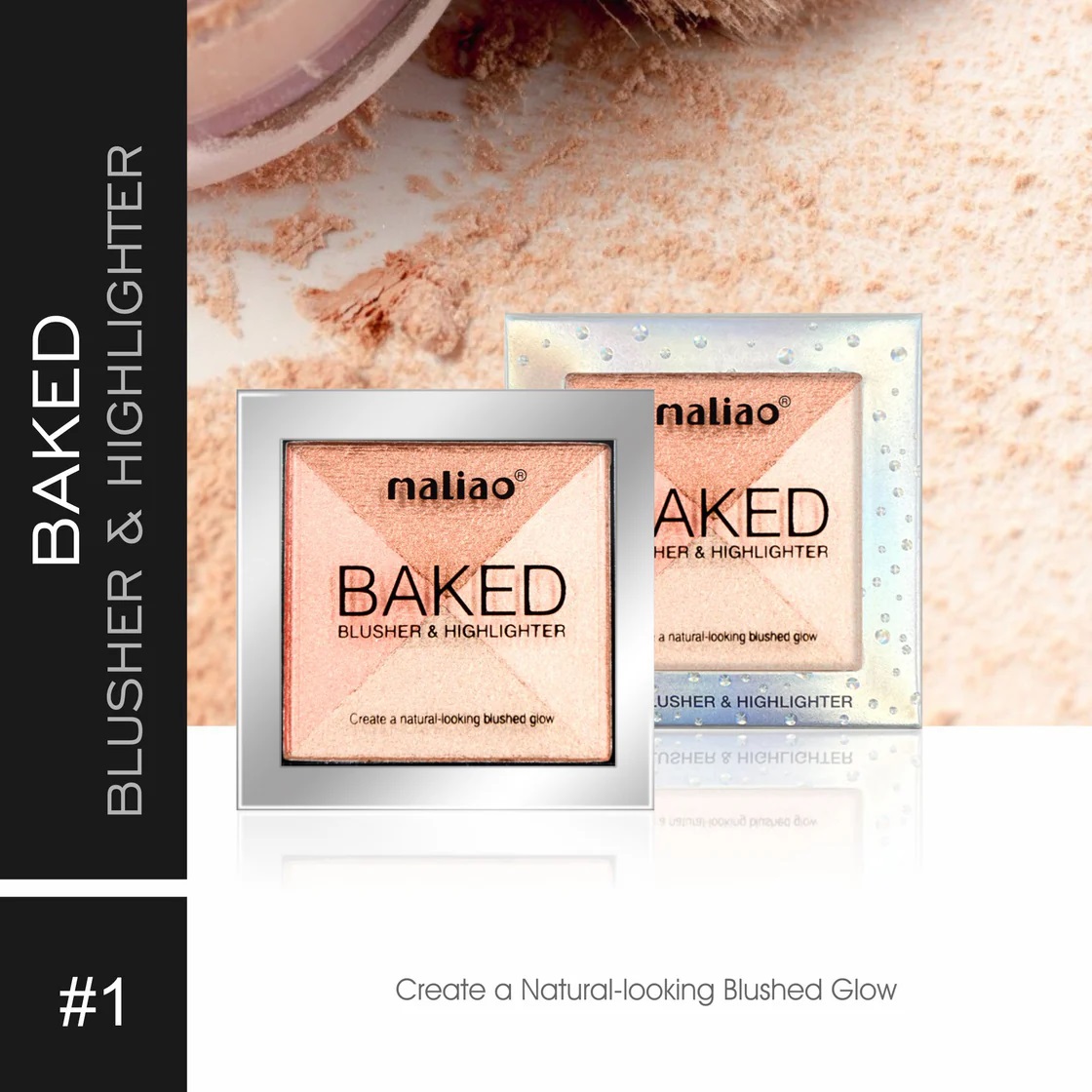 Maliao Baked Blusher & Highlighter - Radiant Glow | Long-Lasting, Smooth Finish