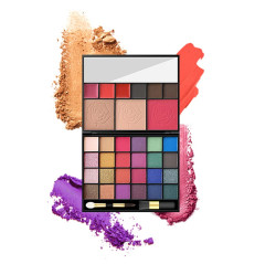 Complete Makeup Kit: Features 24 eyeshadows, 1 blush, 1 highlighter, 3 cream lip glosses, 3 eyebrow powders, and 1 contour powder.