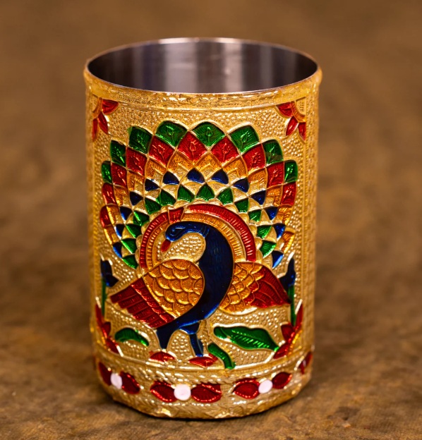 This elegant Meenakari Glass adds a touch of traditional opulence to any dining experience.
