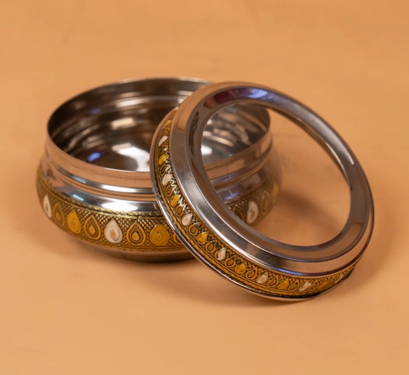This Meenakari Transparent Dabba is a practical and elegant return gift option.