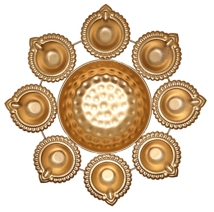 Metal Flower Pot - 1.5 x 10.5 Inches | Brass Polish Urli/ 9 Diya with Uruli for Pooja/ 270 Gms Approx