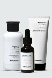 A 3 product routine for dry & dehydrated skin. Dry skin can feel tight, itchy and even painful. These products are formulated with high-potency ingredients like Aquaporin Boosters, Hyaluronic Acid, Polyglutamic Acid (PGA), & Marula Oil to not just provide instant boost of hydration, but also maintain hydration levels of skin for longer.