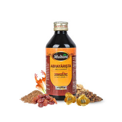 Multani Abhyarishta is an Ayurvedic tonic for digestion and constipation relief. It helps regulate bowel movements, improve gut health, and boost metabolism.