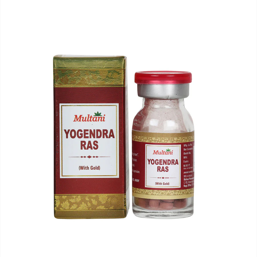 Multani Yogendra Ras with Gold is a powerful Ayurvedic formulation enriched with gold (Swarna Bhasma) that helps in revitalizing the body and enhancing overall well-being. It is widely used in Ayurveda to strengthen the nervous system, boost energy levels, and improve general health. This Rasayan (rejuvenating tonic) is particularly beneficial for managing neurological disorders, diabetes, sexual weakness, and digestive issues.