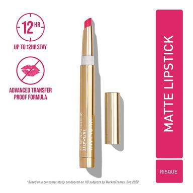Youll fall in love with these stunning shades of MyGlamm Ultimatte Long-Stay Matte Lipstick. Lightweight, pigment-rich colour in a transfer-proof formula that glides on smooth and lasts for up to 12Hrs*. This long-stay matte lipstick is enriched with the goodness of Shea Butter, Jojoba Oil, Almond Oil and Vitamin E, this vegan and alcohol-free formula delivers a silky matte finish for lips that never feel dry giving you that perfect pout.