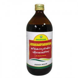 ingredients: It is a combination of Dashamoolarista and jeerakaristam. cumin seeds(jeera) dhataki ginger nutmeg musta cardamom patra cinnamon Nagkesara yavani kankola clove