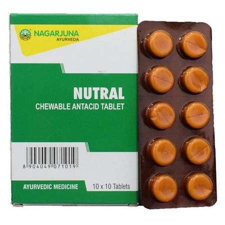 Nagarjuna Nutral Chewable Tablet contains Shankha Bhasma, Hingu, Ela, Shunti, Jiraka, Lashuna and Peppermint flavor as a combination of ingredients.