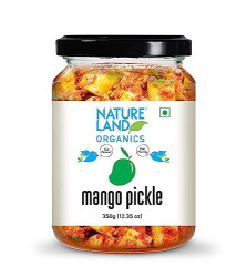 Mango Pickle is made from raw mangoes, spices and oil. Natureland Organics Mango pickle is prepared with traditional Indian Pickling Techniques that guarantee its 100% organic content. Mango pickle is relished as a side in every meal in Indian Households. Our Natural Mango Pickle is rich in Antioxidants, Vitamin K and Fiber, which proves to be a boon for health.