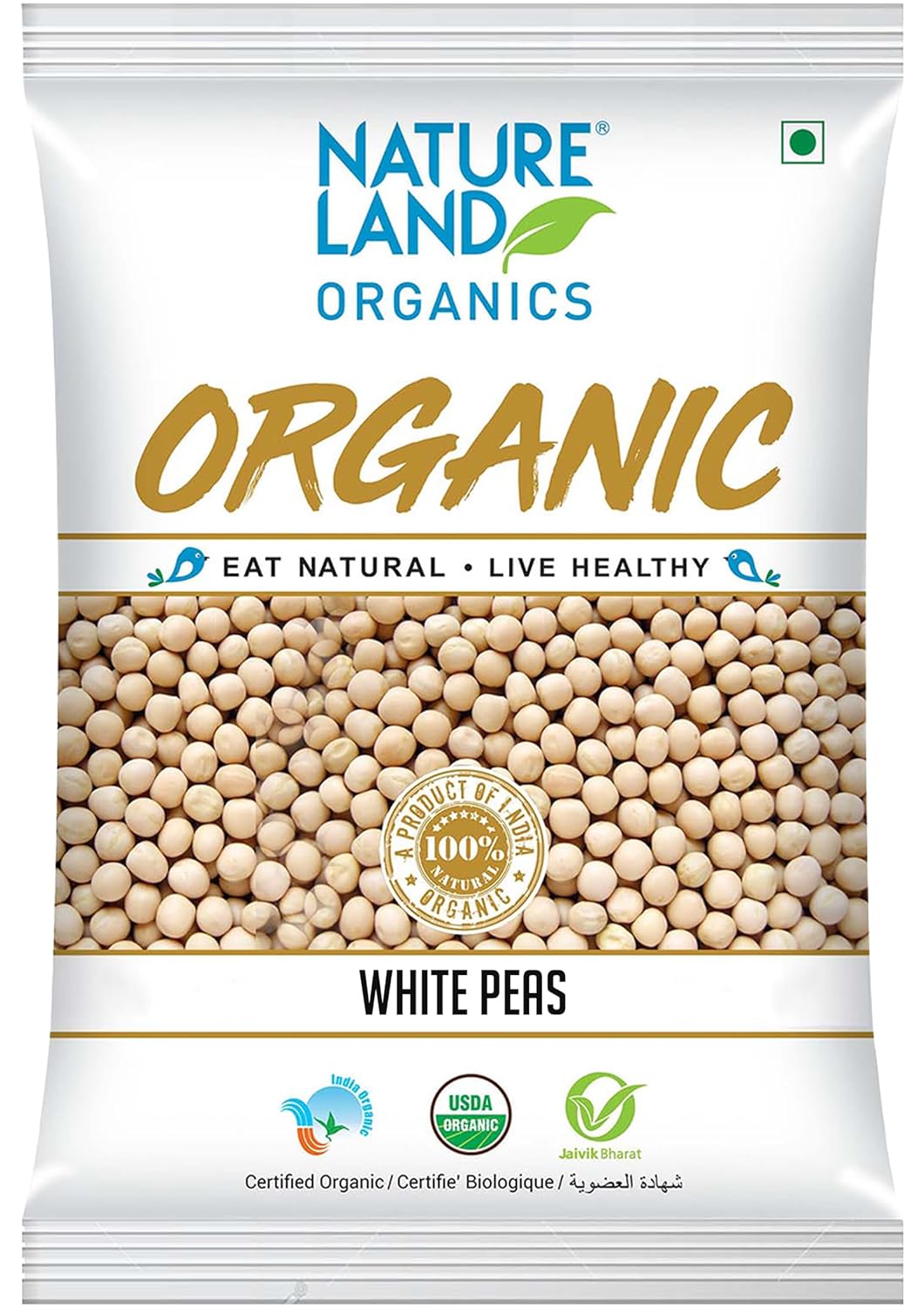 NatureLand Organics White Peas are loaded with natural goodness. Our organic white peas are a top-notch product for fitness freaks. Enriched with vitamins and minerals, white peas are low in fats and help you stabilize your blood sugar levels. You can add these to your daily diet in the wholesome form of Matar Kulcha, soups etc.