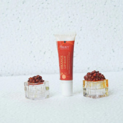 Usage: Wash and dry your hands before applying the lip balm. Using your index finger, take out a small amount of balm and apply at the center of the bottom lip first, working your way toward the corners. Draw in your lips to spread excess balm. If you wear lipstick, apply the balm to your lips first and allow it to sit for a few minutes before applying lipstick.