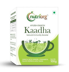 Nutriorg Ayush Kwath Kadha 100g is a natural home remedy to fight germs, boost your immunity and help fight seasonal ailments like colds. This Kaadha is made with ingredients easily found in an Indian household that includes dry spices, tulsi, ginger and other herbs. The best way to extract their benefits and medicinal qualities is by making a decoction along with other natural immunity boosters like honey and turmeric.