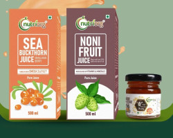 Nutriorg Sea buckthorn and Noni Juice combo come in a 500ml bottle each. In the combo, you get Sea buckthorn Juice which is made from Himalayan Berries, a rich source of Omega 3, 6 and 9 as well as the rarest Omega 7. It is also a rich source of vitamin C which helps boost immunity levels. It is an excellent antioxidant and helps to maintain healthy skin and hair. The other part of the combo is Noni juice which is made from 97% pure Noni fruit concentrate and 2.8% Garcinia Cambogia extract. Nutriorg’s Noni Juice has powerful healing properties that are used for centuries by Polynesians as a natural medicine for various types of diseases/disorders such as allergies, cancer, diabetes and much more.