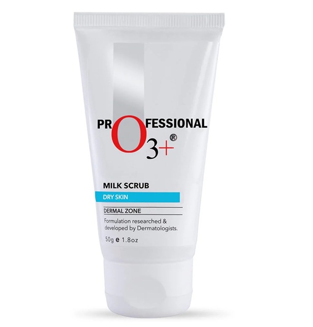 The o3+ advanced milk scrub moisturizes and exfoliates