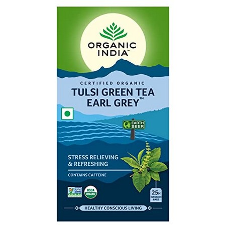 Organic India Tulsi Green Tea Earl Grey Tea Bags :