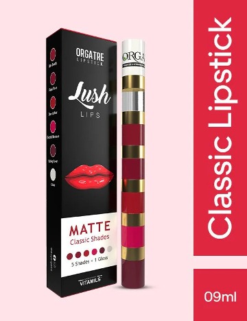 Orgatre Lush Lips 5 in 1 Multicolor Classic Matte Liquid Lipstick With Gloss: