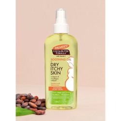 Palmer's Cocoa Butter Formula For Dry, Itchy Skin Soothing Oil is uniquely formulated to soothe, moisturize and soften the dry, itchy skin associated with pregnancy. The unique combination of Cocoa Butter, Vitamin E, Collagen, and Elastin soothes and softens skin naturally, while maintaining skin elasticity and firmness. The addition of Lecithin delivers further softening and smoothing effects. Convenient pump spray. Dermatologically Tested.